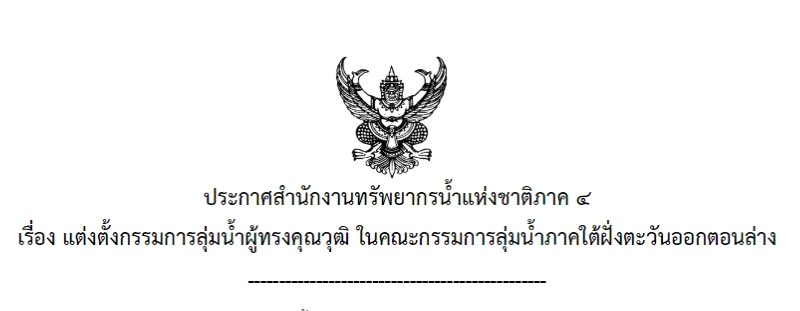 ประกาศสำนักงานทรัพยากรน้ำแห่งชาติภาค ๔เรื่อง แต่งตั้งกรรมการลุ่มน้ำผู้ทรงคุณวุฒิ ในคณะกรรมการลุ่มน้ำภาภาคใต้ฝั่งตะวันออกตอนล่าง 18 มีนาคม 202518 มีนาคม 2025 มงคลชัย กองรัตน์ 0 Comments อ่านต่อ...
