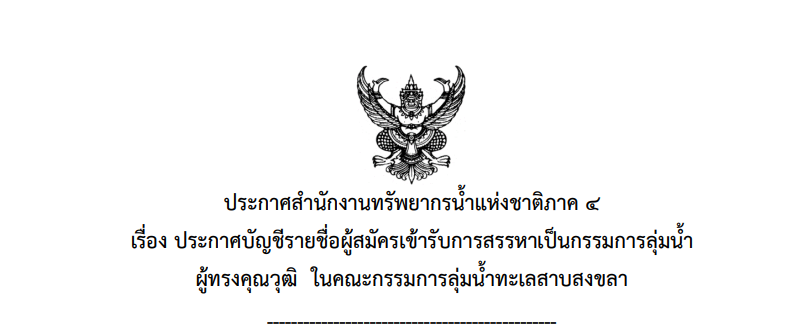 ประกาศสำนักงานทรัพยากรน้ำแห่งชาติภาค 4 เรื่อง ประกาศบัญชีรายชื่อผู้สมัครเข้ารับการสรรหาเป็นกรรมการลุ่มน้ำ ผู้ทรงคุณวุฒิ ในคณะกรรมการลุ่มน้ำทะเลสาบสงขลา 3 มีนาคม 20253 มีนาคม 2025 มงคลชัย กองรัตน์ 0 Comments อ่านต่อ...