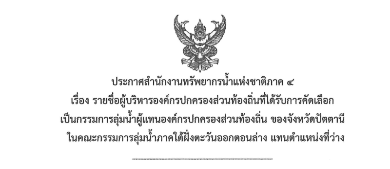 ประกาศสำนักงานทรัพยากรน้ำเเห่งชาติภาคที่4 เรื่อง รายชื่อผู้บริหารองกรค์ปกครองส่วนท้องถิ่นที่ได้รับการคัดเลือกเป็นกรรมการลุ่มน้ำผู้เเทนองค์กรปกครองส่วนท้องถิ่น ของจังหวัดปัตานีในคณะกรรมการลุ่มน้ำภาคใต้ฝั่งตะวันออกตอนล่าง เเทนตำเเหน่งที่ว่าง 5 มีนาคม 20255 มีนาคม 2025 มงคลชัย กองรัตน์ 0 Comments อ่านต่อ...