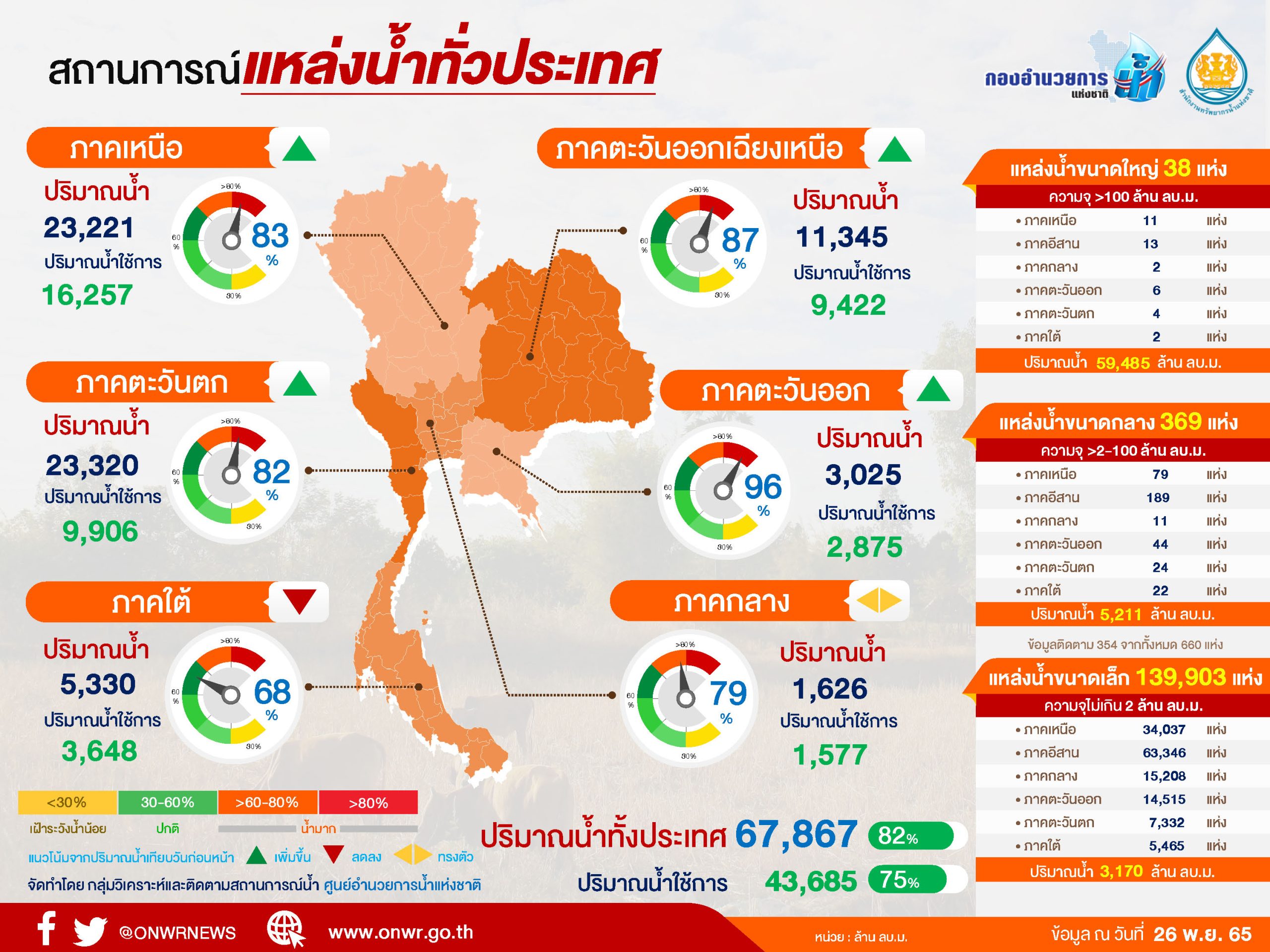 สรุปสถานการณ์น้ำภาพรวมของประเทศ วันที่ 26 พ.ย. 65 28 พฤศจิกายน 2022 มงคลชัย กองรัตน์ 0 Comments แชร์ : 0 More รายงานสรุปสถานการณ์น้ำ
