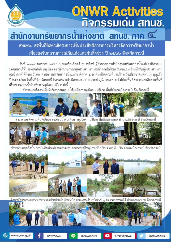 สทนช.๔- ลงพื้นที่ติดตามโครงการเพิ่มประสิทธิภาพการบริหารจัดการทรัพยากรน้ำเพื่อรองรับสถานการณ์ภัยแล้งและฝนทิ้งช่วง ปี ๒๕๖๖ จังหวัดกระบี่ 31 มกราคม 202331 มกราคม 2023 มงคลชัย กองรัตน์ 0 Comments แชร์ : 0 More One Page
