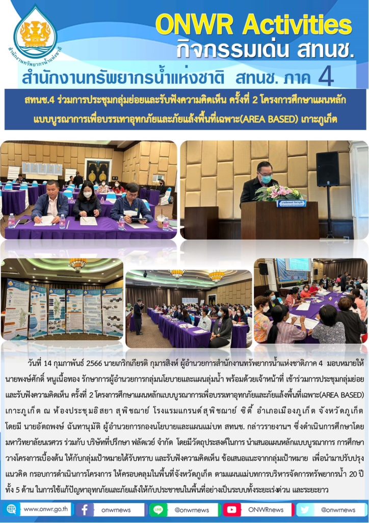 สทนช.4 ร่วมการประชุมกลุ่มย่อยและรับฟังความคิดเห็น ครั้งที่ 2 โครงการศึกษาแผนหลักแบบบูรณาการเพื่อบรรเทาอุทกภัยและภัยแล้งฟื้นที่เฉพาะ(AREA BASED) เกาะภูเก็ต 15 กุมภาพันธ์ 202315 กุมภาพันธ์ 2023 มงคลชัย กองรัตน์ 0 Comments แชร์ : 0 More One Page