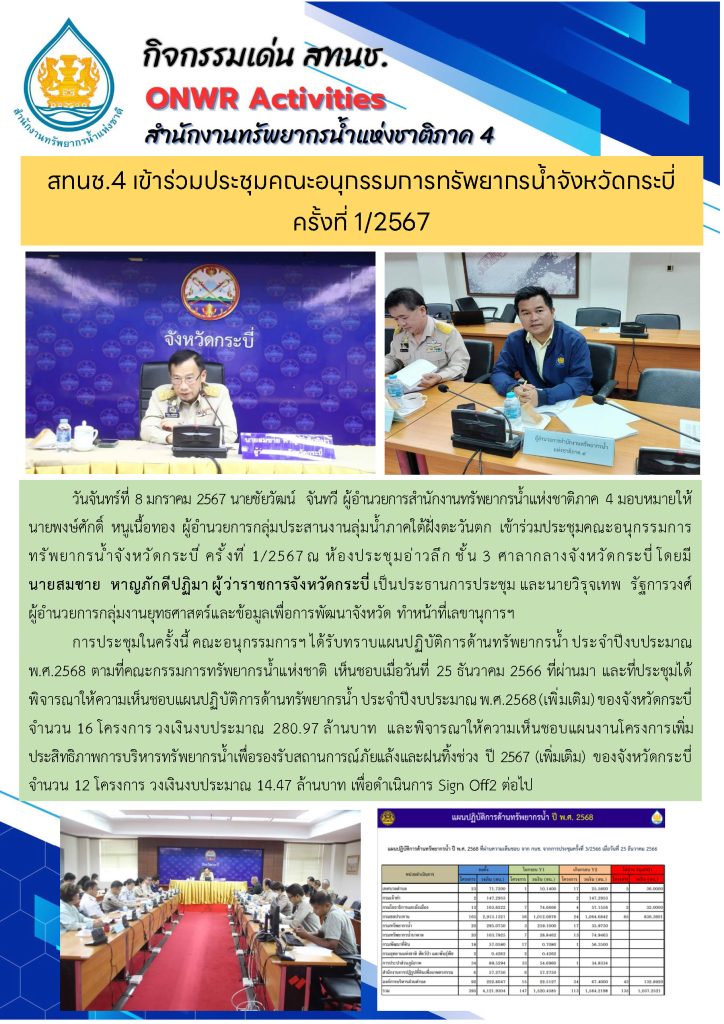 สทนช.4 เข้าร่วมประชุมคณะอนุกรรมการทรัพยากรน้ำจังหวัดกระบี่ ครั้งที่ 1/2567 12 มกราคม 202412 มกราคม 2024 มงคลชัย กองรัตน์ 0 Comments แชร์ : 0 More One Page