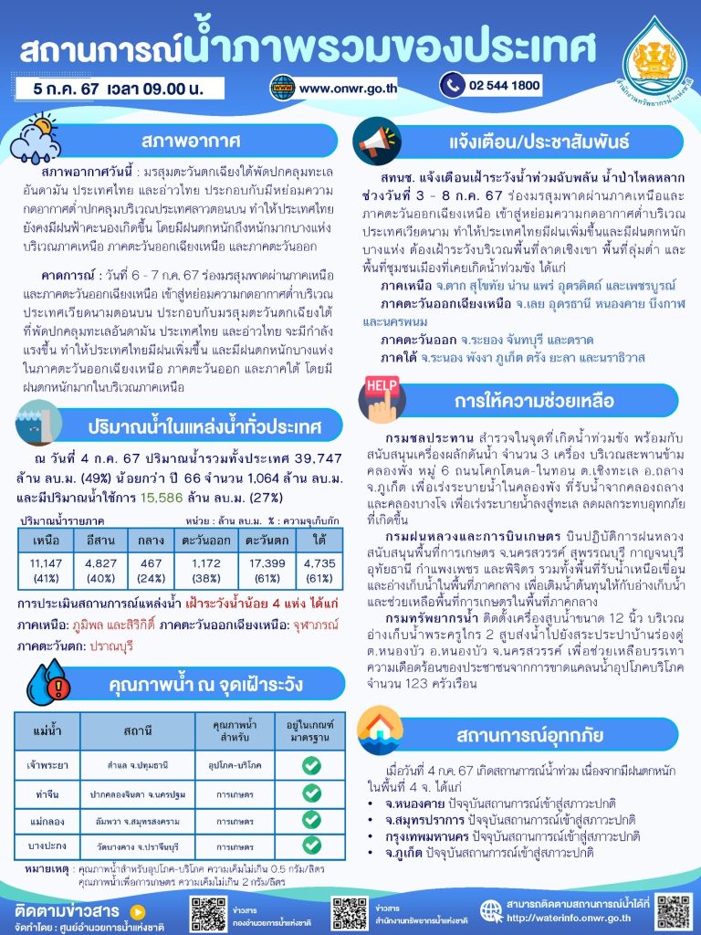 รายงานสรุปสถานการณ์น้ำ 5 ก.ค. 67 9 กรกฎาคม 20249 กรกฎาคม 2024 มงคลชัย กองรัตน์ 0 Comments แชร์ : 0 More รายงานสรุปสถานการณ์น้ำ