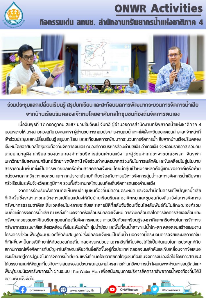 สำนักงานทรัพยากรน้ำแห่งชาติภาค 4 ร่วมประชุมแลกเปลี่ยนเรียนรู้ สรุปบทเรียน และสะท้อนผลการพัฒนากระบวนการจัดการน้ำเสีย จากบ้านเรือนริมคลองเจ๊ะเหมโดยอาศัยกลไกชุมชนท้องถิ่นจัดการตนเอง 19 กรกฎาคม 202419 กรกฎาคม 2024 มงคลชัย กองรัตน์ 0 Comments แชร์ : 0 More One Page