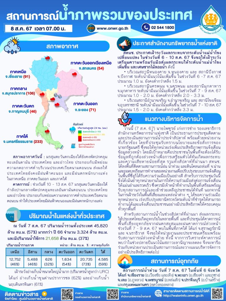 รายงานสรุปสถานการณ์น้ำ 8 ส.ค. 67 8 สิงหาคม 20248 สิงหาคม 2024 มงคลชัย กองรัตน์ 0 Comments แชร์ : 0 More รายงานสรุปสถานการณ์น้ำ