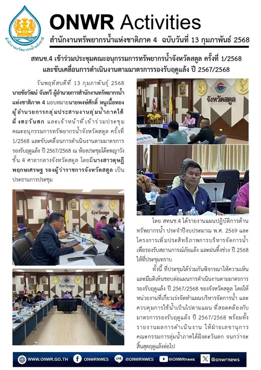 สทนช4 เข้าร่วมประชุมคณะอนุกรรมการทรัพยากรน้ำจังหวัดสตูล ครั้งที่1/2568 และ ขับเคลื่อนการดำเนินงานตามมาตรการรองรับฤดูแล้ง ปี 2567/2568 14 กุมภาพันธ์ 202514 กุมภาพันธ์ 2025 มงคลชัย กองรัตน์ 0 Comments แชร์ : 0 More One Page
