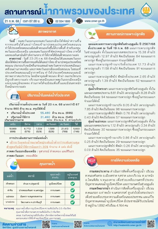 สรุปสถานการณ์น้ำภาพรวมของประเทศ วันที่ 21 ก.พ. 68 21 กุมภาพันธ์ 202521 กุมภาพันธ์ 2025 มงคลชัย กองรัตน์ 0 Comments แชร์ : 0 More รายงานสรุปสถานการณ์น้ำ