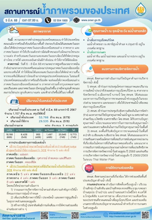สรุปสถานการณ์น้ำภาพรวมของประเทศ วันที่ 5 มี.ค. 68 5 มีนาคม 20255 มีนาคม 2025 มงคลชัย กองรัตน์ 0 Comments แชร์ : 0 More รายงานสรุปสถานการณ์น้ำ