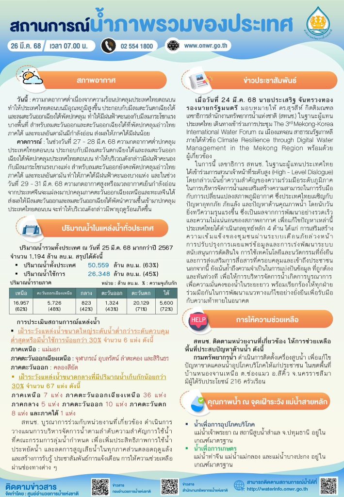 สรุปสถานการณ์น้ำภาพรวมของประเทศ วันที่ 26 มี.ค. 68 26 มีนาคม 202526 มีนาคม 2025 มงคลชัย กองรัตน์ 0 Comments แชร์ : 0 More รายงานสรุปสถานการณ์น้ำ