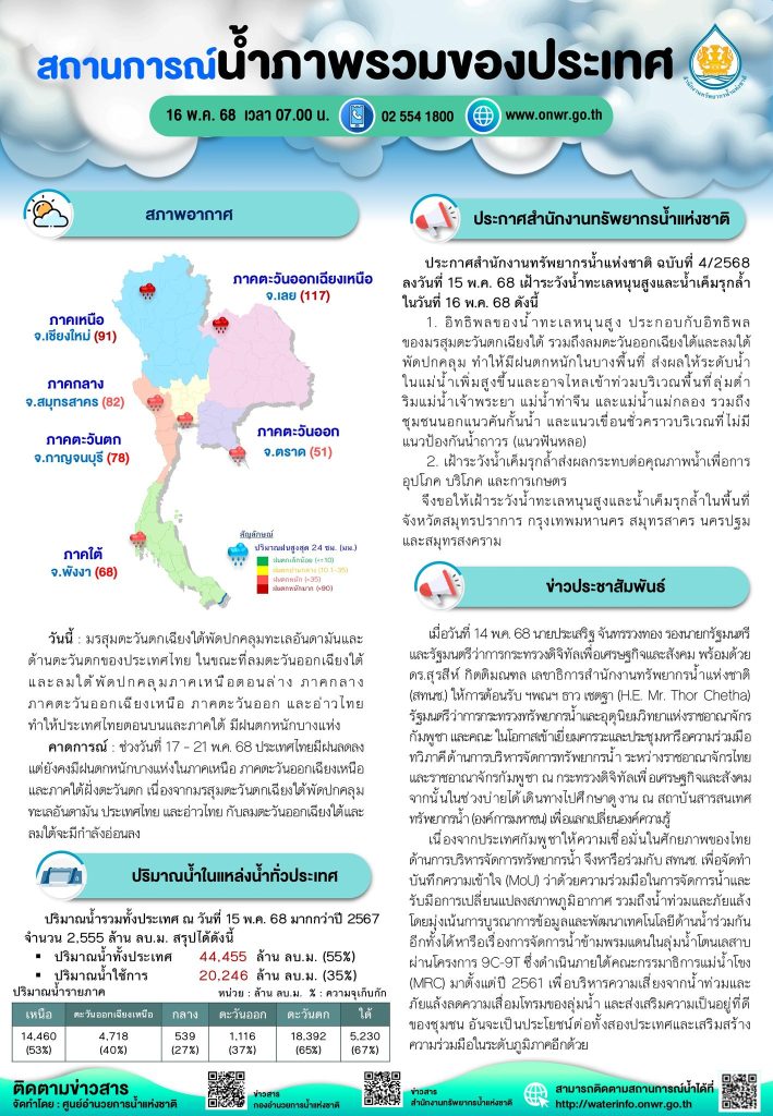 สรุปสถานการณ์น้ำภาพรวมของประเทศ วันที่ 16 พ.ค. 68 16 พฤษภาคม 202516 พฤษภาคม 2025 มงคลชัย กองรัตน์ 0 Comments แชร์ : 0 More รายงานสรุปสถานการณ์น้ำ