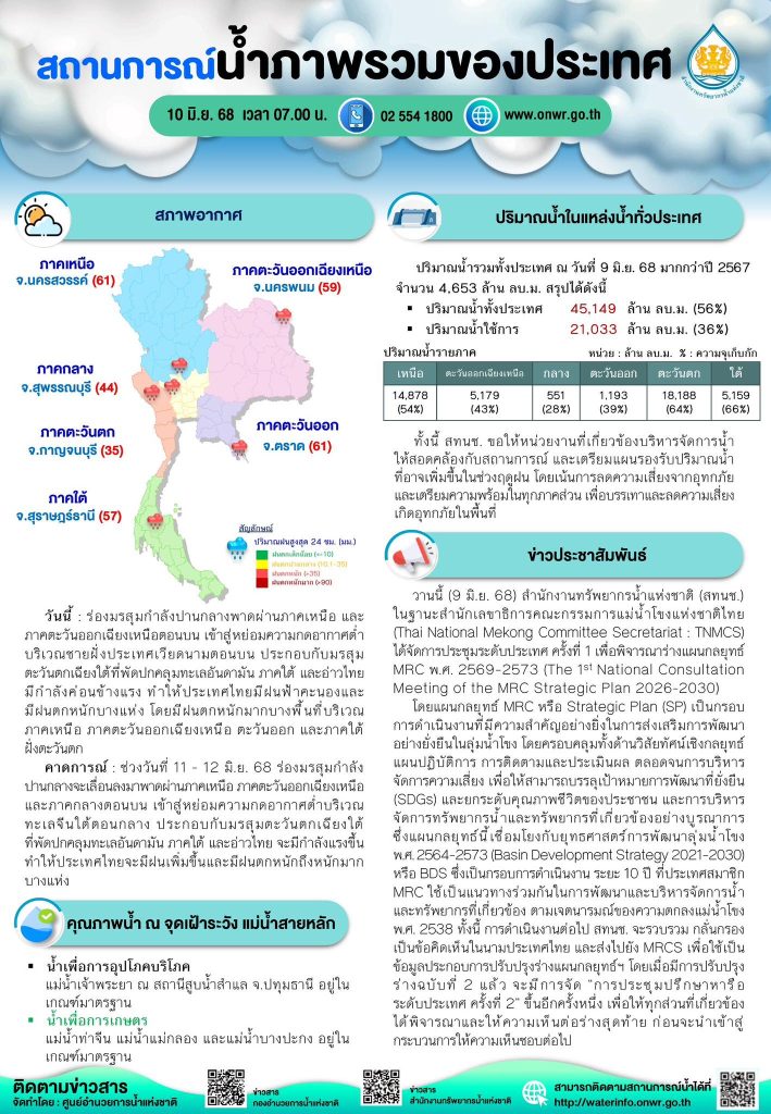 สรุปสถานการณ์น้ำภาพรวมของประเทศ วันที่ 10 มิ.ย. 68 10 มิถุนายน 202510 มิถุนายน 2025 มงคลชัย กองรัตน์ 0 Comments แชร์ : 0 More รายงานสรุปสถานการณ์น้ำ