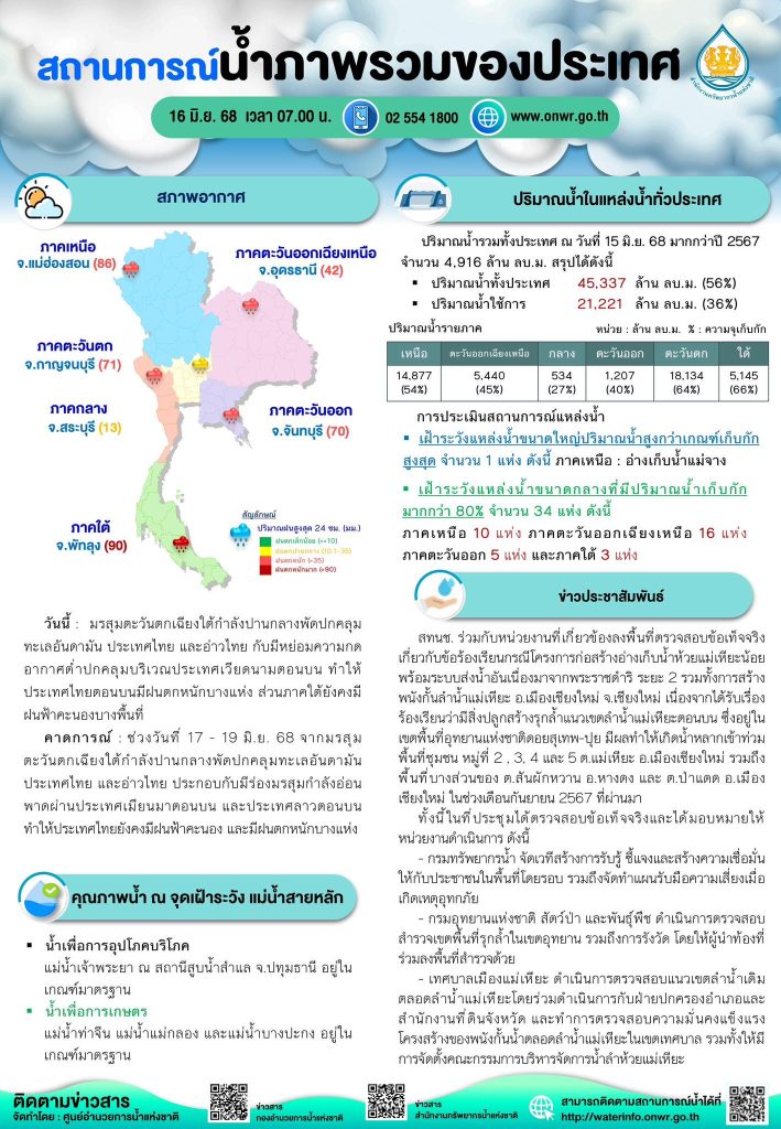 สรุปสถานการณ์น้ำภาพรวมของประเทศ วันที่ 16 มิ.ย. 68 16 มิถุนายน 202516 มิถุนายน 2025 มงคลชัย กองรัตน์ 0 Comments แชร์ : 0 More รายงานสรุปสถานการณ์น้ำ