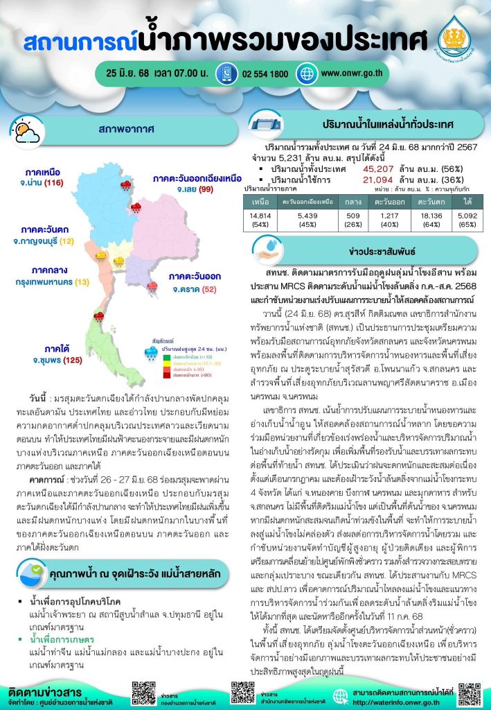 สรุปสถานการณ์น้ำภาพรวมของประเทศ วันที่ 25 มิ.ย. 68 25 มิถุนายน 202525 มิถุนายน 2025 มงคลชัย กองรัตน์ 0 Comments แชร์ : 0 More รายงานสรุปสถานการณ์น้ำ