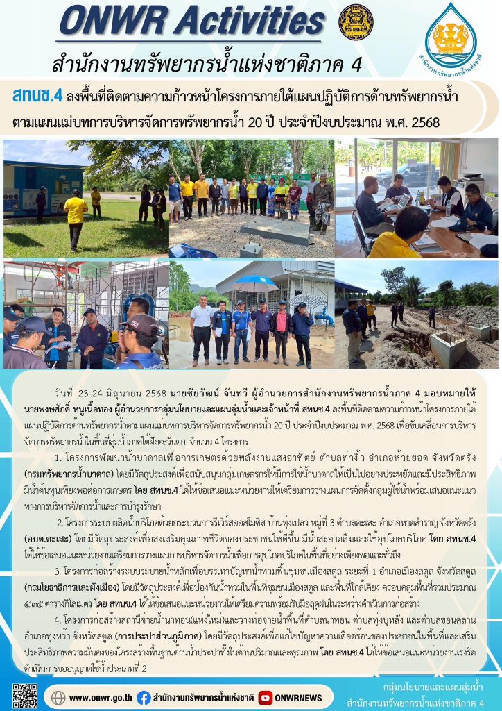 สำนักงานทรัพยากรน้ำแห่งชาติภาค 4 25 มิถุนายน 202525 มิถุนายน 2025 มงคลชัย กองรัตน์ 0 Comments สทนช.4 ลงพื้นที่ติดตามความก้าวหน้าโครงการภายใต้แผนปฏิบัติการด้านทรัพยากรน้ำ แชร์ : 0 More One Page