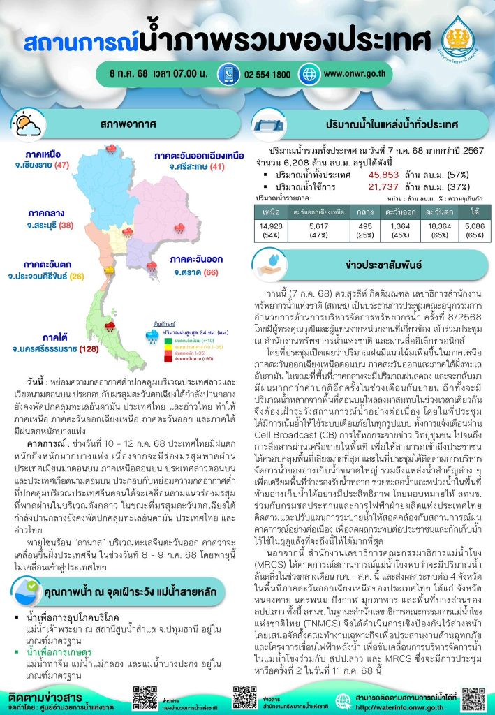 สรุปสถานการณ์น้ำภาพรวมของประเทศ วันที่ 8 ก.ค. 68 8 กรกฎาคม 20258 กรกฎาคม 2025 มงคลชัย กองรัตน์ 0 Comments แชร์ : 0 More รายงานสรุปสถานการณ์น้ำ