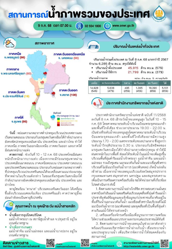 สรุปสถานการณ์น้ำภาพรวมของประเทศ วันที่ 9 ก.ค. 68 9 กรกฎาคม 20259 กรกฎาคม 2025 มงคลชัย กองรัตน์ 0 Comments แชร์ : 0 More รายงานสรุปสถานการณ์น้ำ