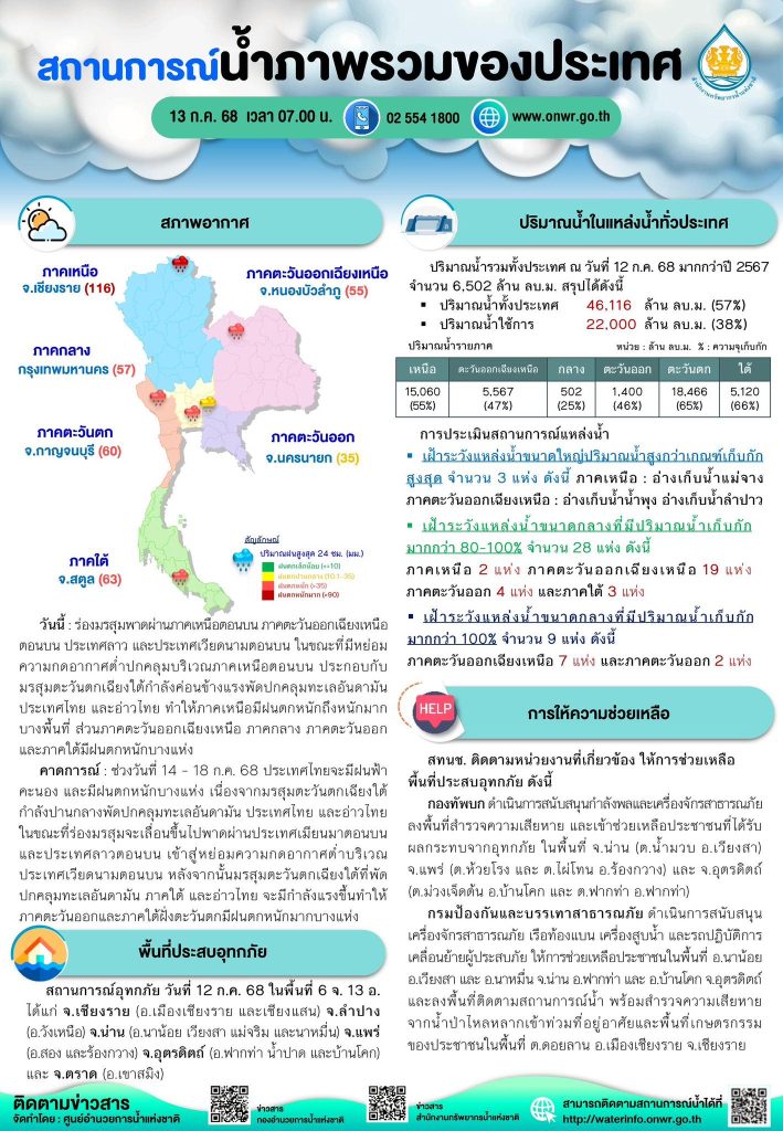 สรุปสถานการณ์น้ำภาพรวมของประเทศ วันที่ 13 ก.ค. 68 14 กรกฎาคม 202514 กรกฎาคม 2025 มงคลชัย กองรัตน์ 0 Comments แชร์ : 0 More รายงานสรุปสถานการณ์น้ำ