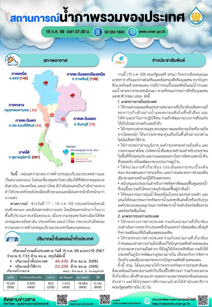 สรุปสถานการณ์น้ำภาพรวมของประเทศ วันที่ 16 ก.ค. 68 16 กรกฎาคม 202516 กรกฎาคม 2025 มงคลชัย กองรัตน์ 0 Comments แชร์ : 0 More รายงานสรุปสถานการณ์น้ำ
