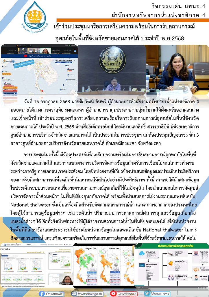 เข้าร่วมประชุมหารือการเตรียมความพร้อมในการรับสถานการณ์อุทกภัยในพื้นที่จังหวัดชายแดนภาคใต้ ประจำปี พ.ศ.ศ.2568 16 กรกฎาคม 202516 กรกฎาคม 2025 มงคลชัย กองรัตน์ 0 Comments แชร์ : 0 More One Page
