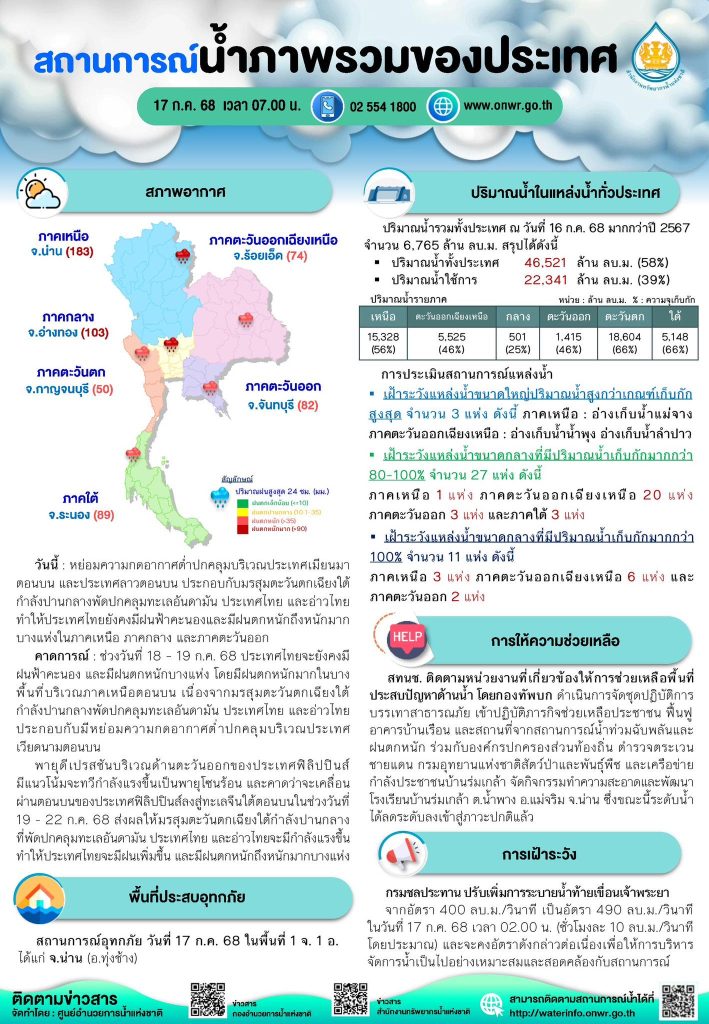 สรุปสถานการณ์น้ำภาพรวมของประเทศ วันที่ 17 ก.ค. 68 18 กรกฎาคม 202518 กรกฎาคม 2025 มงคลชัย กองรัตน์ 0 Comments แชร์ : 0 More รายงานสรุปสถานการณ์น้ำ