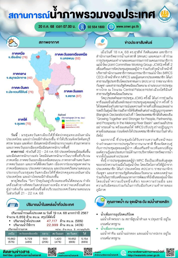 สรุปสถานการณ์น้ำภาพรวมของประเทศ วันที่ 20 ก.ค. 68 21 กรกฎาคม 202521 กรกฎาคม 2025 มงคลชัย กองรัตน์ 0 Comments แชร์ : 0 More รายงานสรุปสถานการณ์น้ำ