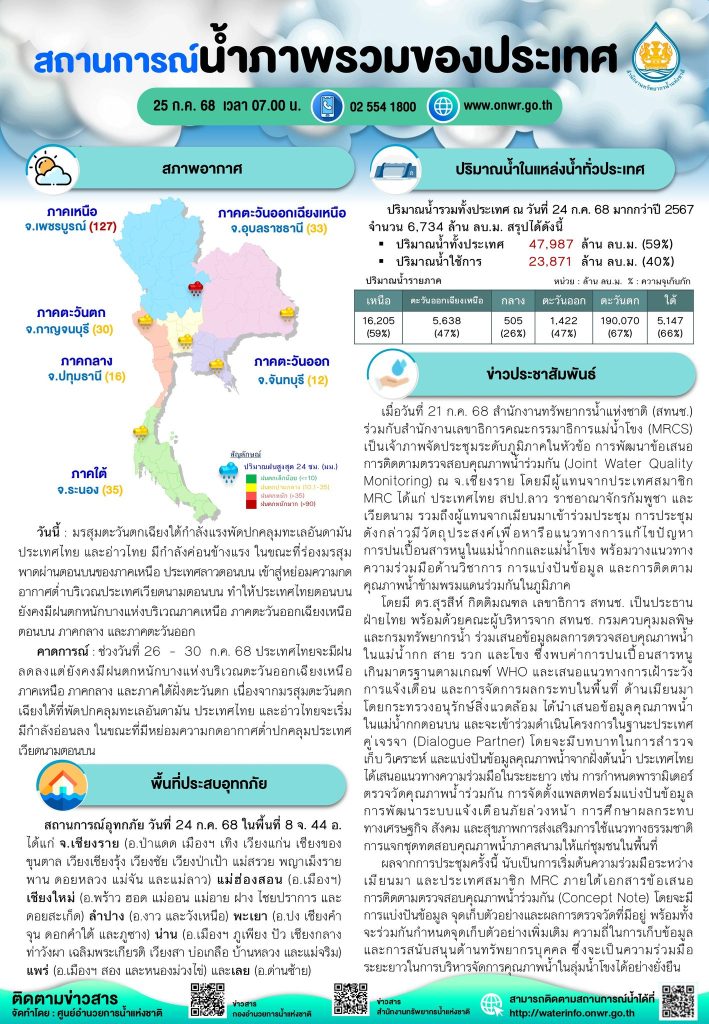 สรุปสถานการณ์น้ำภาพรวมของประเทศ วันที่ 25 ก.ค. 68 25 กรกฎาคม 202525 กรกฎาคม 2025 มงคลชัย กองรัตน์ 0 Comments แชร์ : 0 More รายงานสรุปสถานการณ์น้ำ