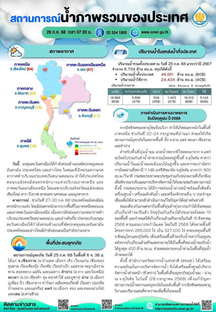 สรุปสถานการณ์น้ำภาพรวมของประเทศ วันที่ 26 ก.ค. 68 29 กรกฎาคม 202529 กรกฎาคม 2025 มงคลชัย กองรัตน์ 0 Comments แชร์ : 0 More รายงานสรุปสถานการณ์น้ำ