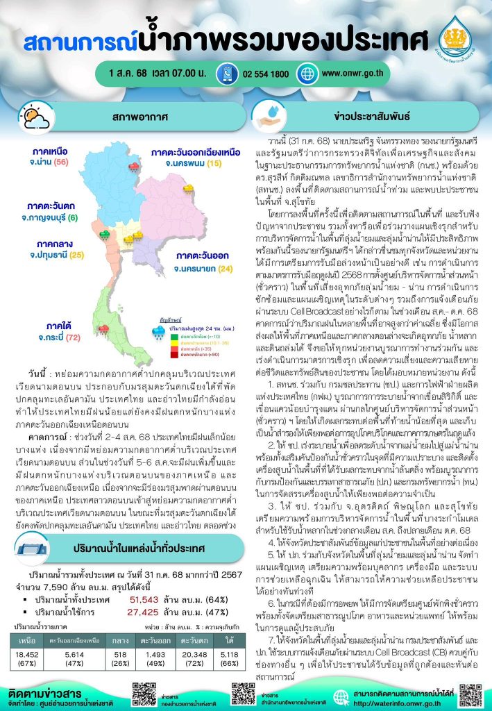 สรุปสถานการณ์น้ำภาพรวมของประเทศ วันที่ 1 ส.ค. 68 1 สิงหาคม 20251 สิงหาคม 2025 มงคลชัย กองรัตน์ 0 Comments แชร์ : 0 More รายงานสรุปสถานการณ์น้ำ
