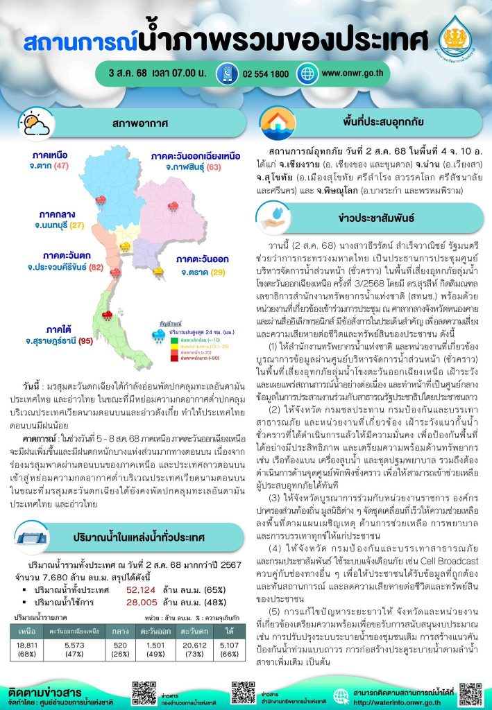 สรุปสถานการณ์น้ำภาพรวมของประเทศ วันที่ 3 ส.ค. 68 4 สิงหาคม 20254 สิงหาคม 2025 มงคลชัย กองรัตน์ 0 Comments แชร์ : 0 More รายงานสรุปสถานการณ์น้ำ