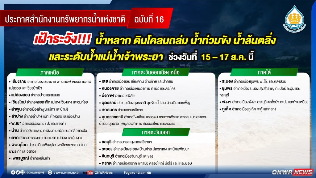 สำนักงานทรัพยากรน้ำแห่งชาติ ประกาศ ฉบับที่ 16/2568 13 สิงหาคม 202513 สิงหาคม 2025 มงคลชัย กองรัตน์ 0 Comments แชร์ : 0 More แจ้งเตือน