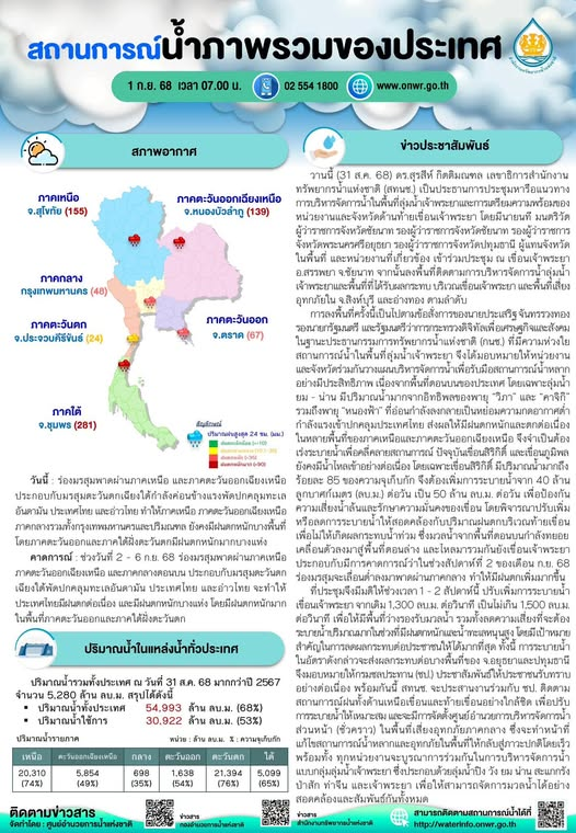 สรุปสถานการณ์น้ำภาพรวมของประเทศ วันที่ 1 ก.ย. 68 1 กันยายน 20251 กันยายน 2025 มงคลชัย กองรัตน์ 0 Comments แชร์ : 0 More รายงานสรุปสถานการณ์น้ำ
