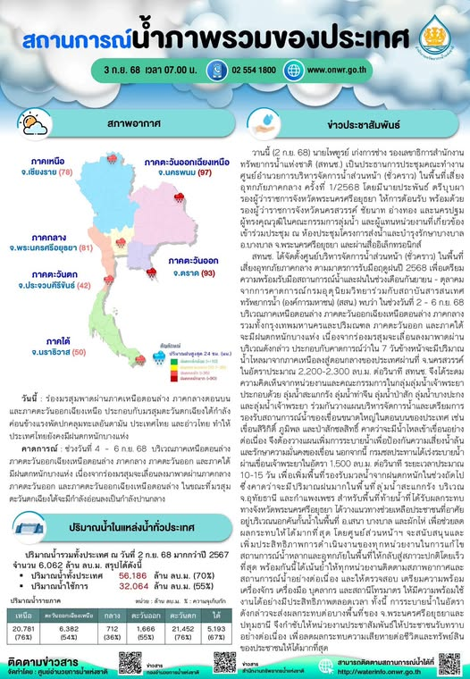 สรุปสถานการณ์น้ำภาพรวมของประเทศ วันที่ 3 ก.ย. 68 3 กันยายน 20253 กันยายน 2025 มงคลชัย กองรัตน์ 0 Comments แชร์ : 0 More รายงานสรุปสถานการณ์น้ำ