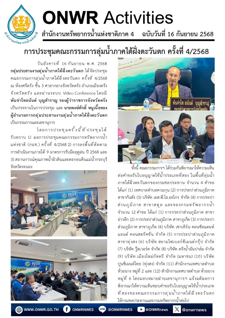 กลุ่มประสานงานลุ่มน้ำภาคใต้ฝั่งตะวันตก ได้จัดประชุมคณะกรรมการลุ่มน้ำภาคใต้ฝั่งตะวันตก ครั้งที่ 4/25668 17 กันยายน 202517 กันยายน 2025 มงคลชัย กองรัตน์ 0 Comments แชร์ : 0 More One Page