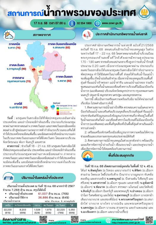 สรุปสถานการณ์น้ำภาพรวมของประเทศ วันที่ 17 ก.ย. 68 19 กันยายน 202519 กันยายน 2025 มงคลชัย กองรัตน์ 0 Comments แชร์ : 0 More รายงานสรุปสถานการณ์น้ำ