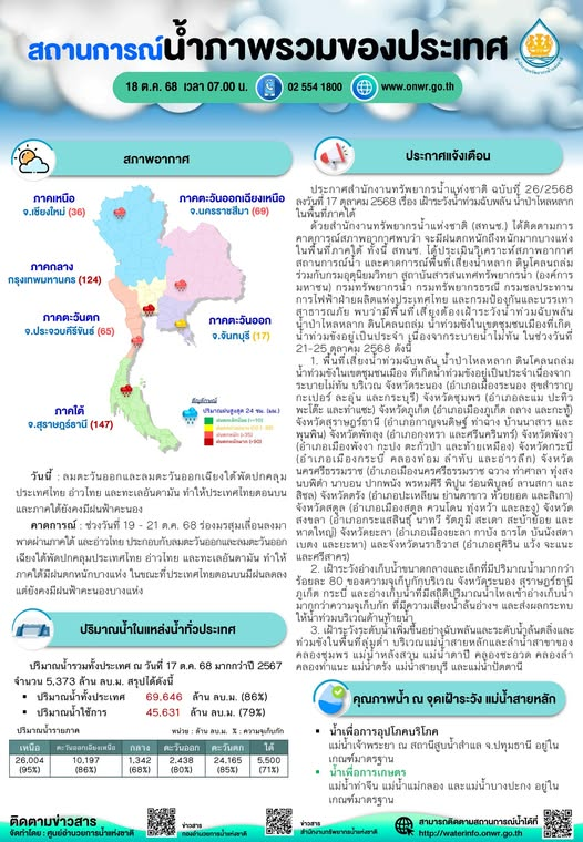 สรุปสถานการณ์น้ำภาพรวมของประเทศ วันที่ 18 ต.ค. 68 21 ตุลาคม 202521 ตุลาคม 2025 มงคลชัย กองรัตน์ 0 Comments แชร์ : 0 More รายงานสรุปสถานการณ์น้ำ
