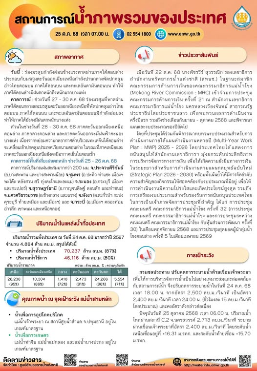 สรุปสถานการณ์น้ำภาพรวมของประเทศ วันที่ 25 ต.ค. 68 27 ตุลาคม 202527 ตุลาคม 2025 มงคลชัย กองรัตน์ 0 Comments แชร์ : 0 More รายงานสรุปสถานการณ์น้ำ