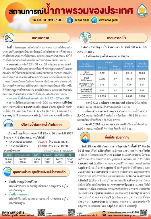 สรุปสถานการณ์น้ำภาพรวมของประเทศ วันที่ 26 ต.ค. 68 27 ตุลาคม 202527 ตุลาคม 2025 มงคลชัย กองรัตน์ 0 Comments แชร์ : 0 More รายงานสรุปสถานการณ์น้ำ