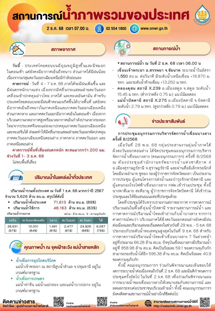 สรุปสถานการณ์น้ำภาพรวมของประเทศ วันที่ 2 ธ.ค. 68 2 ธันวาคม 20252 ธันวาคม 2025 มงคลชัย กองรัตน์ 0 Comments แชร์ : 0 More รายงานสรุปสถานการณ์น้ำ