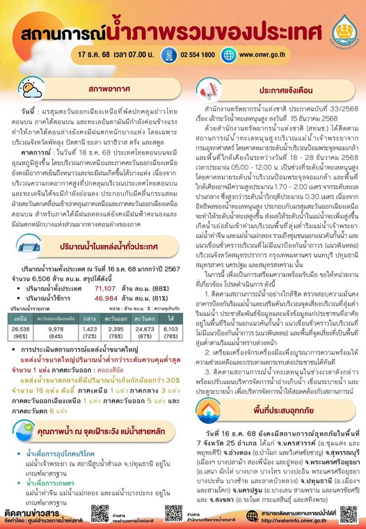 สรุปสถานการณ์น้ำภาพรวมของประเทศ วันที่ 17 ธ.ค. 68 17 ธันวาคม 202517 ธันวาคม 2025 มงคลชัย กองรัตน์ 0 Comments แชร์ : 0 More รายงานสรุปสถานการณ์น้ำ