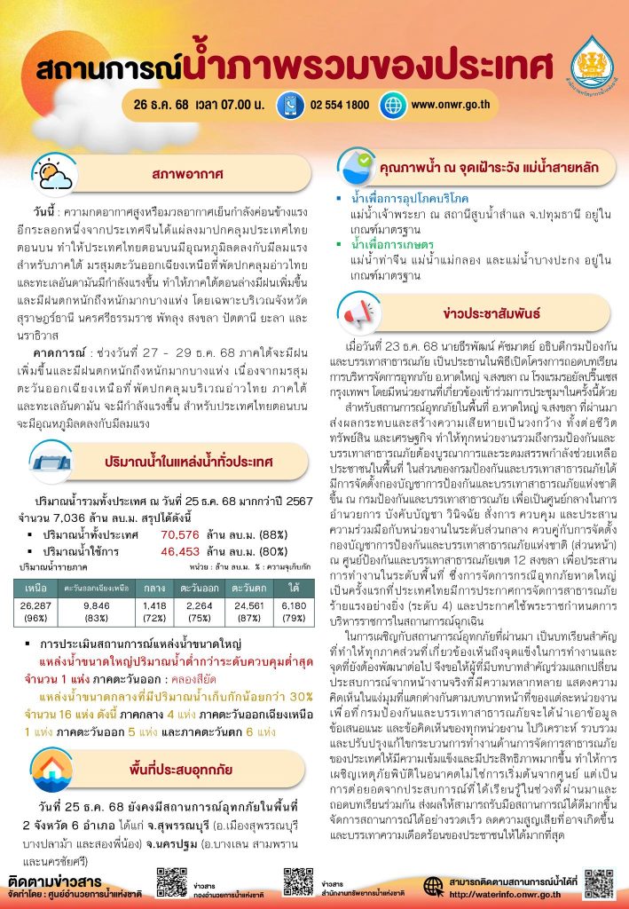 สรุปสถานการณ์น้ำภาพรวมของประเทศ วันที่ 26 ธ.ค. 68 26 ธันวาคม 202526 ธันวาคม 2025 มงคลชัย กองรัตน์ 0 Comments แชร์ : 0 More ไม่มีหมวดหมู่