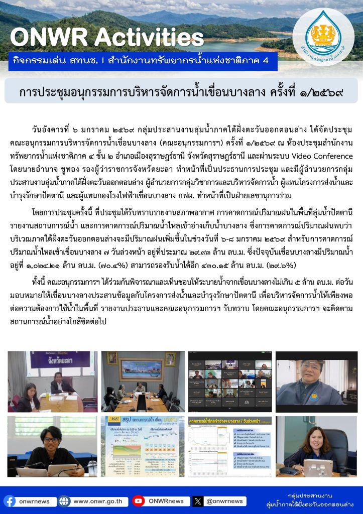 การประชุมอนุกรรมการบริหารจัดการน้ำเขื่อนบางลาง ครั้งที่ ๑/๒๕๖๙ 8 มกราคม 20268 มกราคม 2026 มงคลชัย กองรัตน์ 0 Comments แชร์ : 0 More One Page