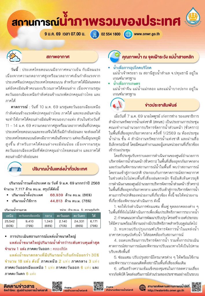 สรุปสถานการณ์น้ำภาพรวมของประเทศ วันที่ 9 ม.ค. 69 9 มกราคม 20269 มกราคม 2026 มงคลชัย กองรัตน์ 0 Comments แชร์ : 0 More รายงานสรุปสถานการณ์น้ำ