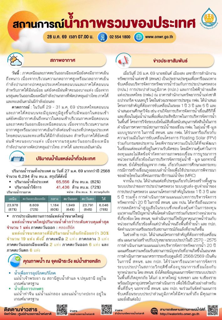 สรุปสถานการณ์น้ำภาพรวมของประเทศ วันที่ 28 ม.ค. 69 28 มกราคม 202628 มกราคม 2026 มงคลชัย กองรัตน์ 0 Comments แชร์ : 0 More รายงานสรุปสถานการณ์น้ำ