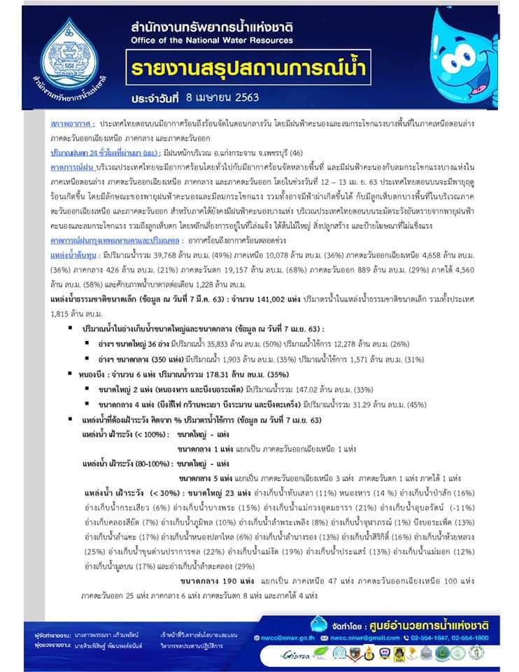 รายงานสรุปสถานการณ์น้ำ 8 เม.ย. 63 8 เมษายน 20208 เมษายน 2020 มงคลชัย กองรัตน์ 0 Comments แชร์ : 0 More รายงานสรุปสถานการณ์น้ำ