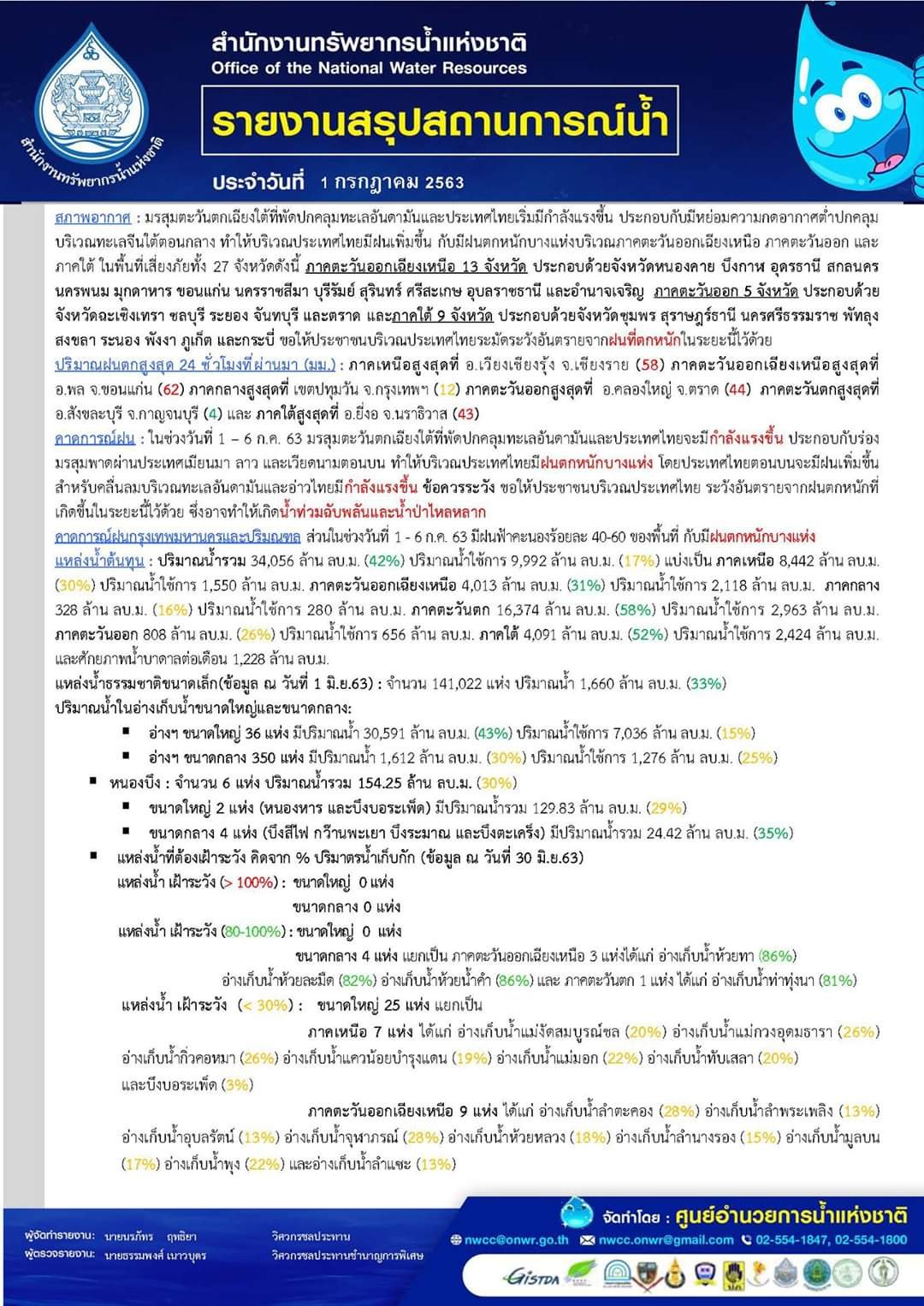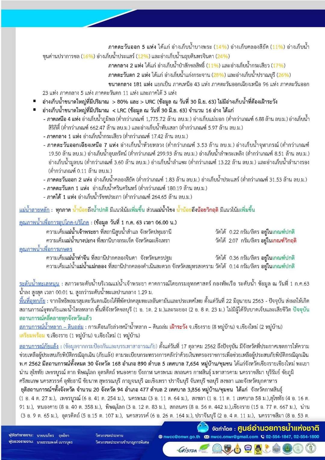 รายงานสรุปสถานการณ์น้ำ 1 ก.ค. 63 1 กรกฎาคม 20201 กรกฎาคม 2020 มงคลชัย กองรัตน์ 0 Comments แชร์ : 0 More รายงานสรุปสถานการณ์น้ำ