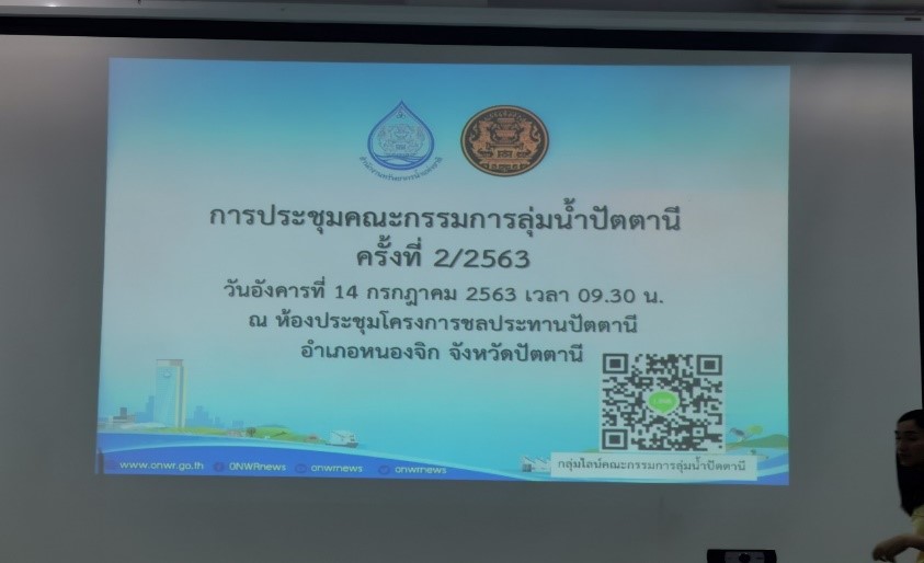 วันที่ 14 กรกฎาคม ๒๕๖๓ เวลา 10.00 น. ณ ห้องประชุม โครงการชลประทานปัตตานี อำเภอหนองจิก จังหวัดปัตตานี โดยมี นายสมนึก พรหมเขียว รองผู้ว่าราชการจังหวัดปัตตานี เป็นประธานการประชุมคณะกรรมการลุ่มน้ำปัตตานี ครั้งที่ 2/2563 พร้อมด้วย นายกรณรมย์ วรรณกุล ผู้อำนวยการสำนักงานทรัพยากรน้ำแห่งชาติ ภาค 4 นายสถาพร รักชีพ วิศวกรชลประทานชำนาญการพิเศษ และหน่วยงาน ที่เกี่ยวข้องเข้าร่วมประชุม การประชุมดังกล่าวเพื่อติดตามและรายงานผลการดำเนินงานของหน่วยงานต่างๆ ได้แก่ แผนบริหารจัดการทรัพยากรน้ำประจำปีงบประมาณ 2563 การจัดการน้ำในฤดูแล้งปี 2563 การดำเนินงานแผนป้องกันและแก้ไขภาวะน้ำแล้งและน้ำท่วม โครงการจัดทำธนาคารน้ำใต้ดิน การติดตามความก้าวหน้าพระราชกฤษฎีกากำหนดลุ่มน้ำและกฎหมายลำดับรองที่เกี่ยวกับการได้มาซึ่งกรรมการลุ่มน้ำ การขับเคลื่อนและติดตามประเมินผลโครงการและแก้ไขปัญหาสิ่งกีดขวางทางน้ำ แผนงานหรือโครงการที่มีวัตถุประสงค์เพื่อฟื้นฟูเศรษฐกิจและสังคมที่ได้รับผลกระทบจากการระบาดของโรคติดเชื้อไวรัสโคโรน่า 2019 การเตรียมความพร้อมสำหรับการบริหารจัดการน้ำใน ฤดูฝน 2563