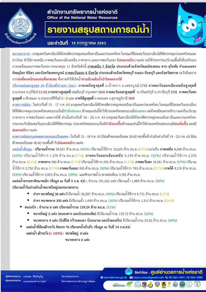 รายงานสรุปสถานการณ์น้ำ 15 ก.ค. 63 15 กรกฎาคม 202016 กรกฎาคม 2020 จักรพงศ์ สุดสิน 0 Comments แชร์ : 0 More รายงานสรุปสถานการณ์น้ำ