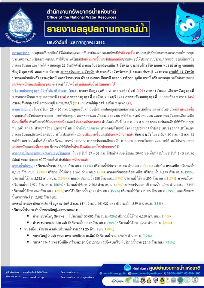 รายงานสรุปสถานการณ์น้ำ 29 ก.ค. 63 29 กรกฎาคม 202029 กรกฎาคม 2020 จักรพงศ์ สุดสิน 0 Comments แชร์ : 0 More รายงานสรุปสถานการณ์น้ำ
