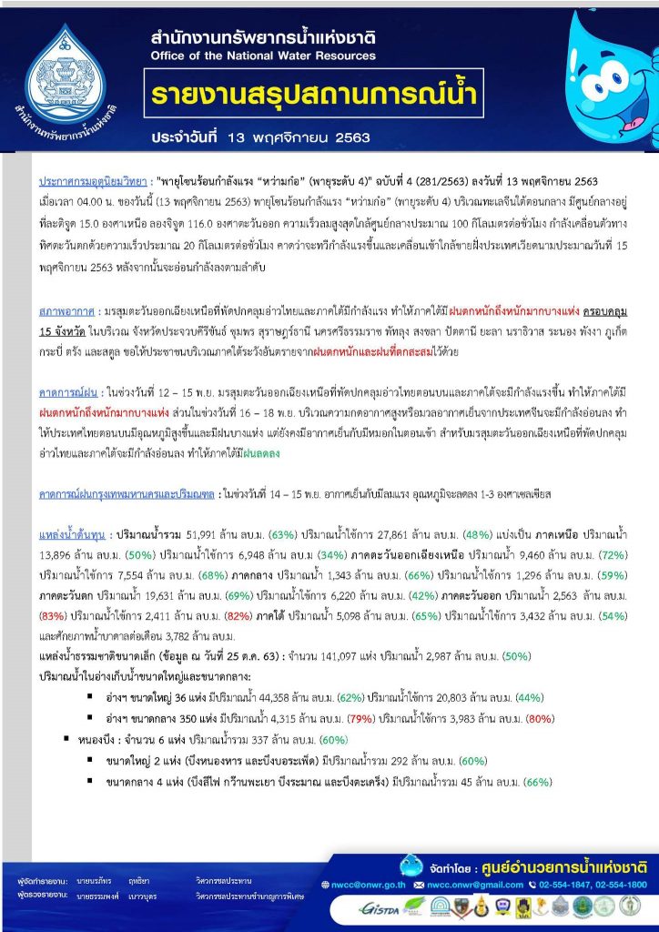 รายงานสรุปสถานการณ์น้ำ 13 พ.ย. 63 13 พฤศจิกายน 202013 พฤศจิกายน 2020 มงคลชัย กองรัตน์ 0 Comments แชร์ : 0 More รายงานสรุปสถานการณ์น้ำ